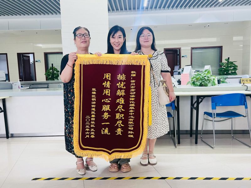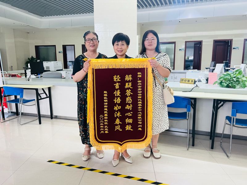 近日,孔女士及其女兒將“解疑答惑耐心細致,輕言慢語如沐春風”“排憂解難盡職盡責,用情用心服務一流”兩面錦旗送至勞代公司退休登記部,表示衷心感謝,并對勞代公司的服務水平大加贊賞。