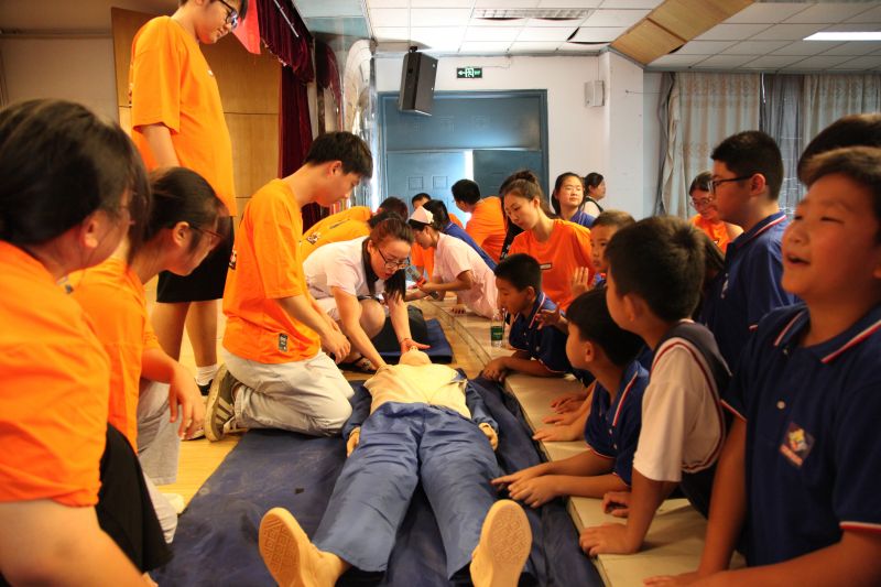 ICU的護(hù)理人員向?qū)W生們講解并演示了急救技能——心肺復(fù)蘇術(shù),并耐心指導(dǎo)學(xué)生們利用模擬人進(jìn)行實(shí)操。學(xué)生們對(duì)此表現(xiàn)出了極大的興趣,認(rèn)真觀看醫(yī)務(wù)人員演示及其他學(xué)生的操練,積極參與操作練習(xí)。通過此項(xiàng)培訓(xùn),讓學(xué)生們了解并掌握這一挽救生命的急救技能,在關(guān)鍵時(shí)刻服務(wù)社會(huì)。