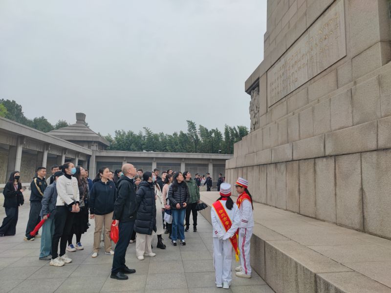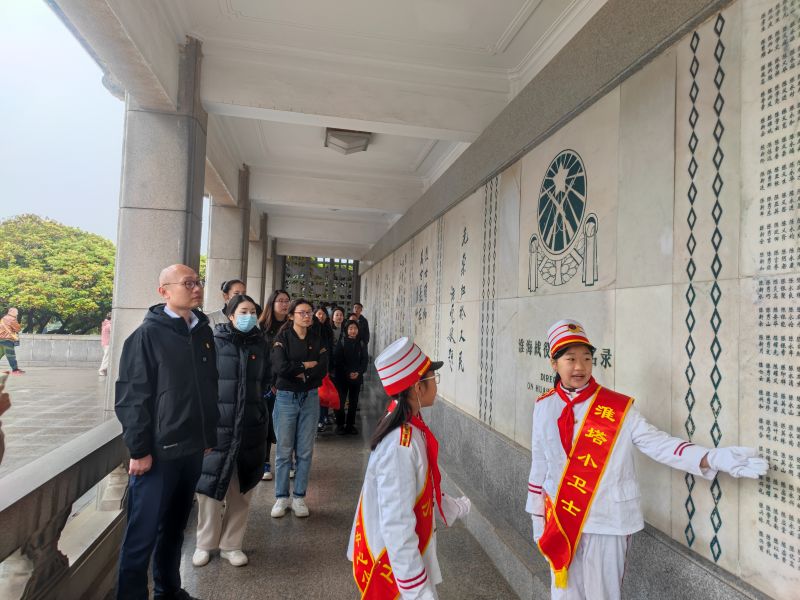 烈士陵園松柏靜哀、氣氛莊重,綿綿細(xì)雨中全體肅立,懷著沉重的心,默哀三分、敬獻(xiàn)鮮花。大家邁著緩慢的步伐繞塔一周,駐足瞻仰塔基上的場景浮雕,當(dāng)年淮海戰(zhàn)役壯觀的場面和戰(zhàn)士們視死如歸的氣勢仿佛重現(xiàn)在眼前。在淮塔小衛(wèi)士的帶領(lǐng)和講解下,觀詳烈士名錄,懷想革命先輩們浴血奮戰(zhàn)的歷史,不無感嘆革命先烈英勇無畏的壯舉。嚴(yán)守紀(jì)律、團結(jié)奮戰(zhàn)、不怕犧牲、勇于奉獻(xiàn)的精神深深觸動著在場的每一個人。