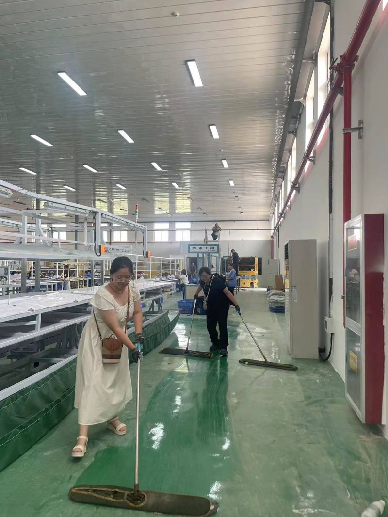 活動開始,新亞公司相關(guān)負責人向大家講解了注意安全事項,分發(fā)工作手套和防護用品,按照分配工作內(nèi)容大家熱火朝天的投入了新工廠的整理及清掃進程。黨員干部們率先垂范,帶頭拿起清掃工具開展現(xiàn)場打掃,男同志們負責規(guī)整運送貨物至倉庫,女同志們按照各自包干區(qū)域細致清掃廠區(qū)地面。在炎熱的高溫下,大家齊心協(xié)力、分工協(xié)作、奮勇爭先,很快完成各自分配任務(wù),充分體現(xiàn)了不怕苦不怕累的戰(zhàn)斗精神。