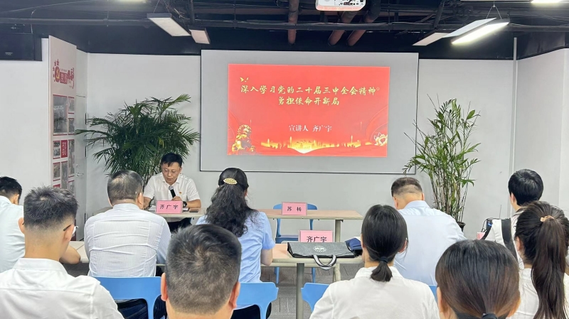 為深入學(xué)習(xí)宣傳貫徹黨的二十屆三中全會精神,營造奮進新征程的良好氛圍,確保讓黨的創(chuàng)新理論在基層生根發(fā)芽。近日,華強資產(chǎn)公司黨總支組織所屬各支部黨員共40余人,在成功大廈黨建活動室開展黨的二十屆三中全會精神主題宣講活動。