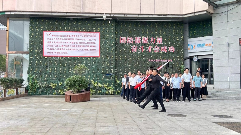 升旗儀式結(jié)束后,華強資產(chǎn)公司黨總支副書記、副總經(jīng)理蘇楊發(fā)言指出,75年前,新中國的成立標志著中華民族站起來了,這是中國共產(chǎn)黨領(lǐng)導下,全體人民共同奮斗的偉大成果。今天,我們在這里舉行新中國成立75周年國慶升旗儀式,就是為了讓廣大干部員工銘記歷史,凝聚奮進力量。前行道路上,全體華強人要把愛黨愛國熱情融入到日常工作中,再鼓干勁,再添措施,以更加振奮的精神風貌、更加扎實的工作作風,創(chuàng)造出更加輝煌的未來。