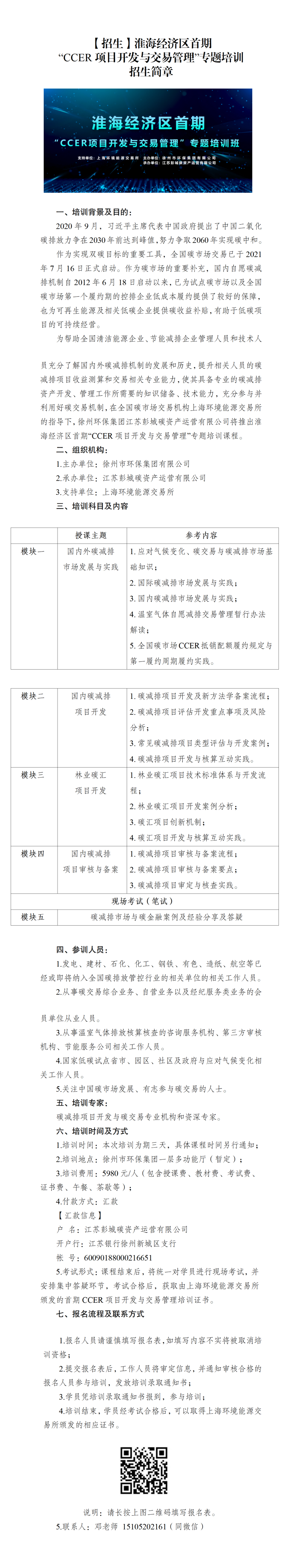 【招生】淮海經(jīng)濟區(qū)首期“CCER項目開發(fā)與交易管理”專題培訓招生簡章