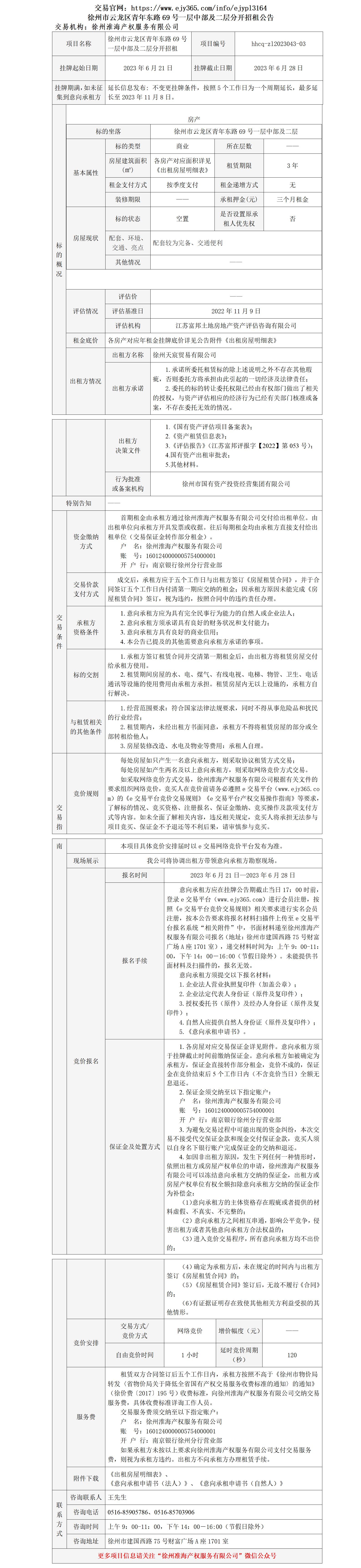 徐州市云龍區(qū)青年?yáng)|路69號(hào)一層中部及二層分開(kāi)招租公告