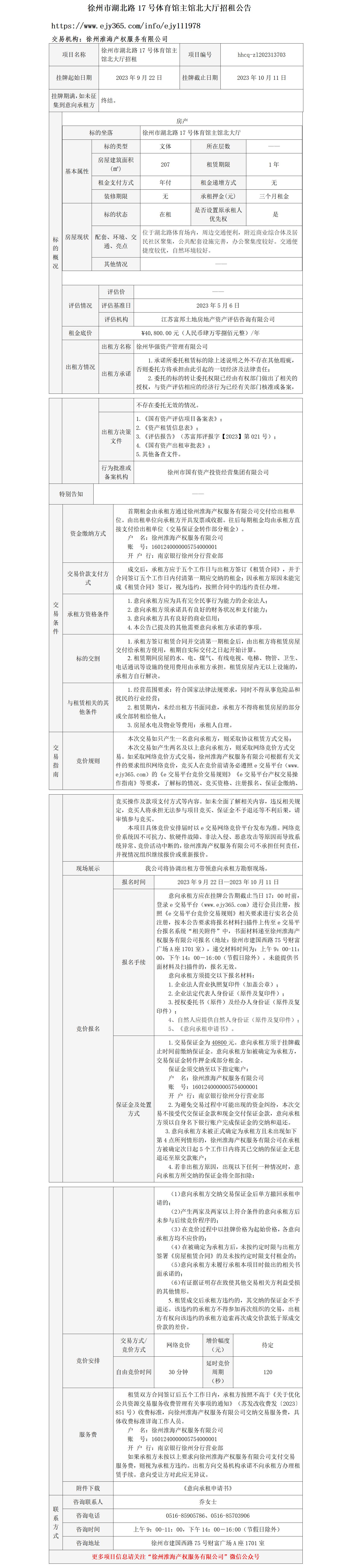 徐州市湖北路17號(hào)體育館主館北大廳招租公告