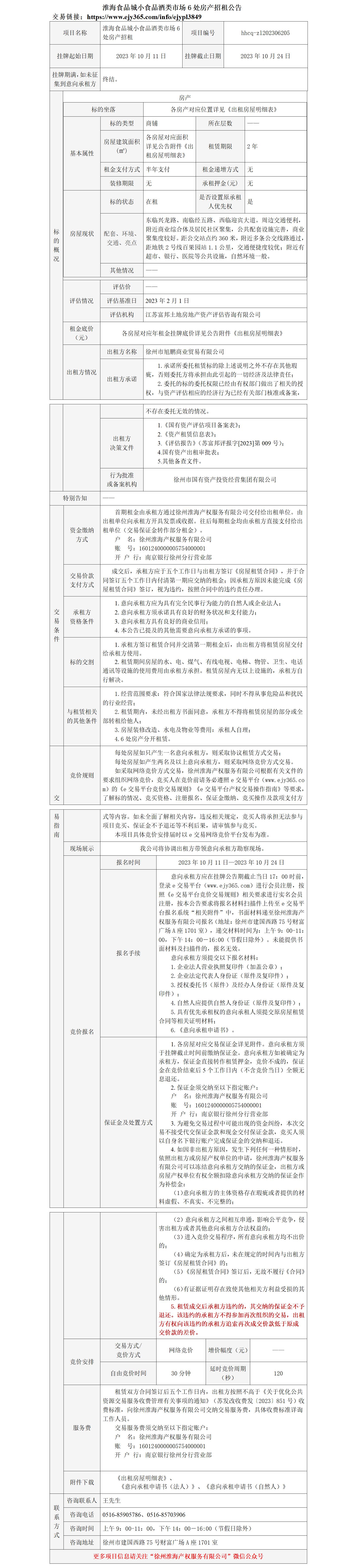 淮海食品城小食品酒類市場6處房產(chǎn)招租公告