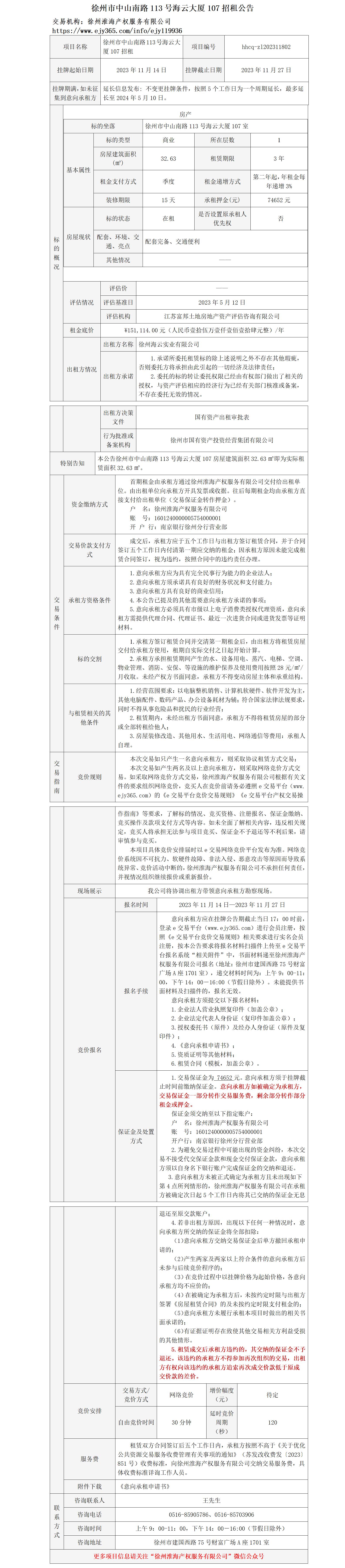 徐州市中山南路113號(hào)海云大廈107招租公告
