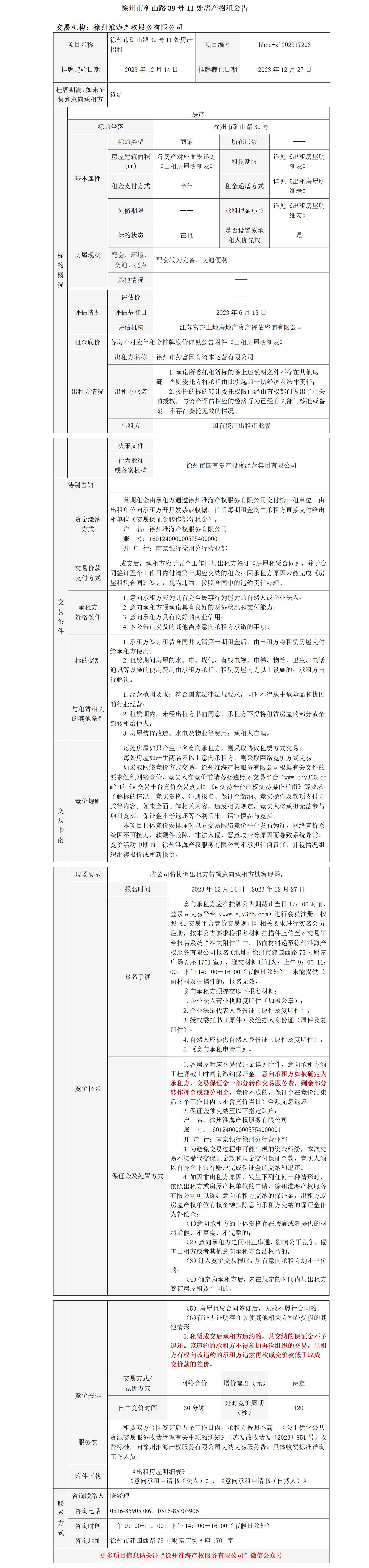 江蘇徐州云龍區(qū)中山南路漢御花園B座一層部分、二層部分、六層房產(chǎn)整體招租公告