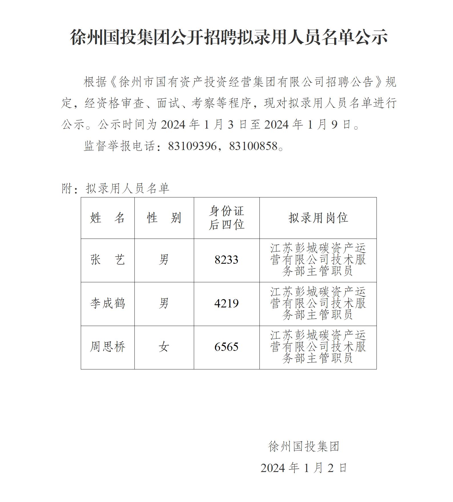 徐州國投集團(tuán)公開招聘擬錄用人員名…