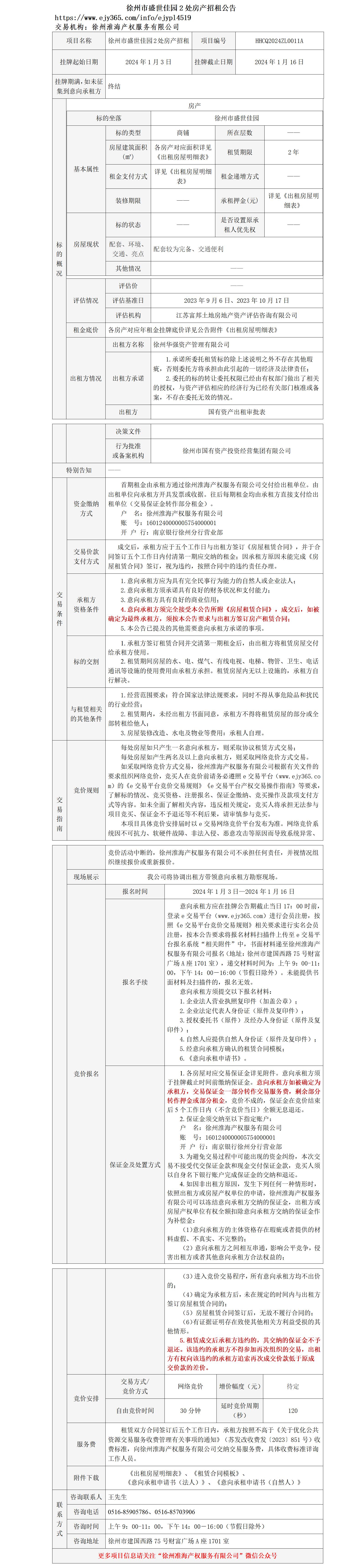 徐州市盛世佳園2處房產(chǎn)招租公告