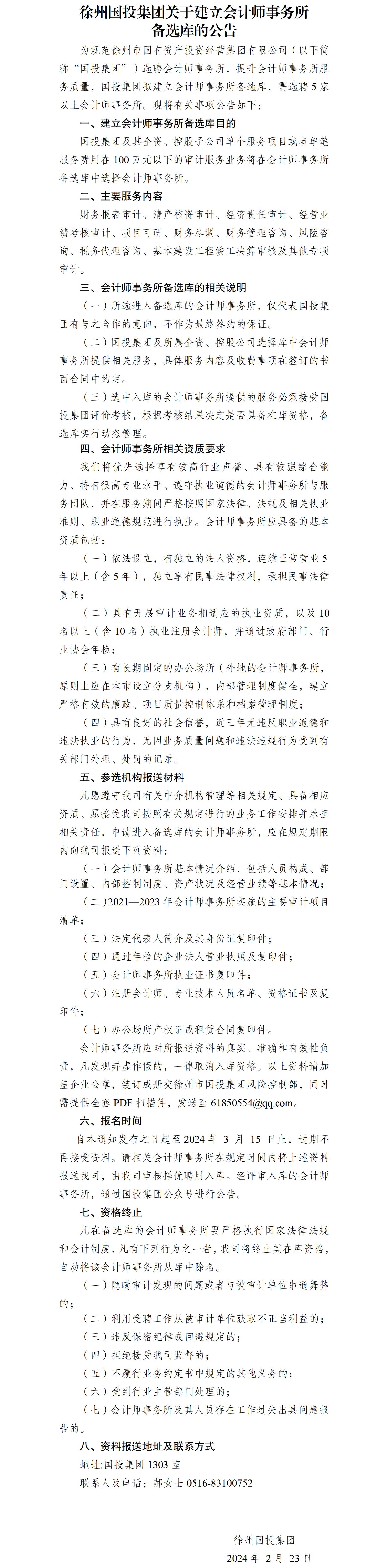 關(guān)于成立國投集團(tuán)會(huì)計(jì)師事務(wù)所備選庫的公告