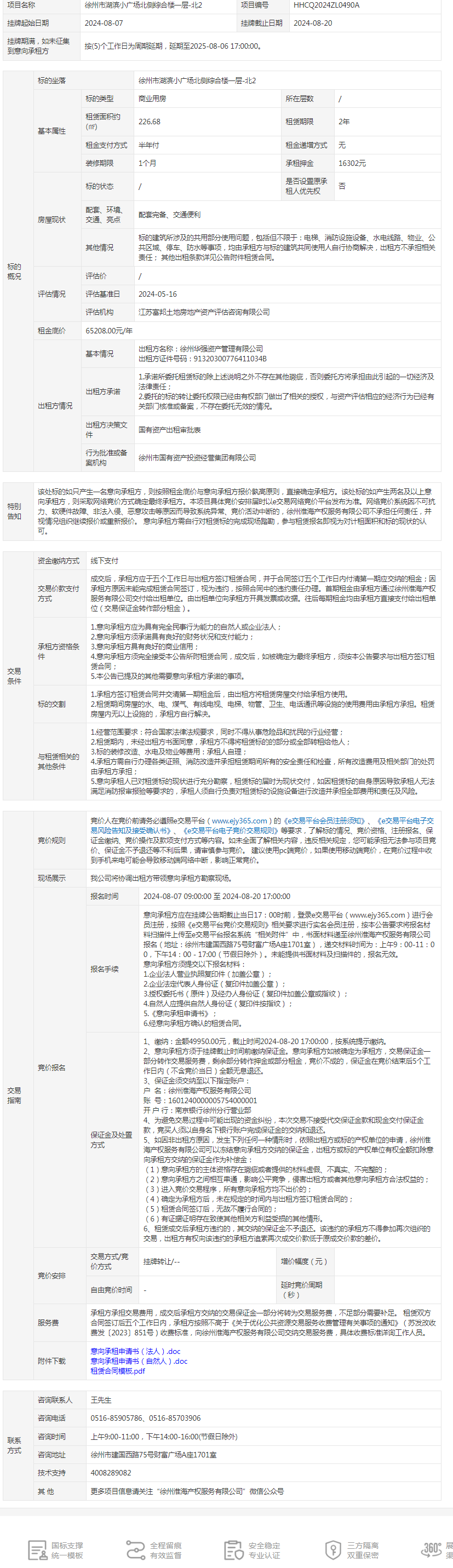 徐州市湖濱小廣場北側綜合樓一層-北2招租公告