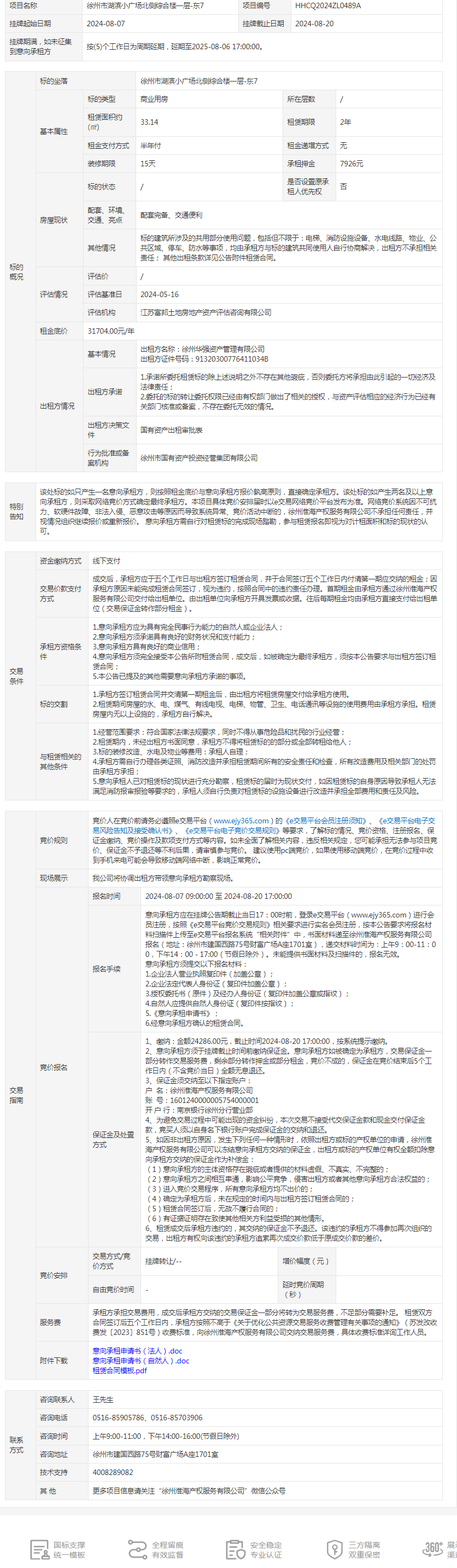 徐州市湖濱小廣場北側(cè)綜合樓一層-東7招租公告