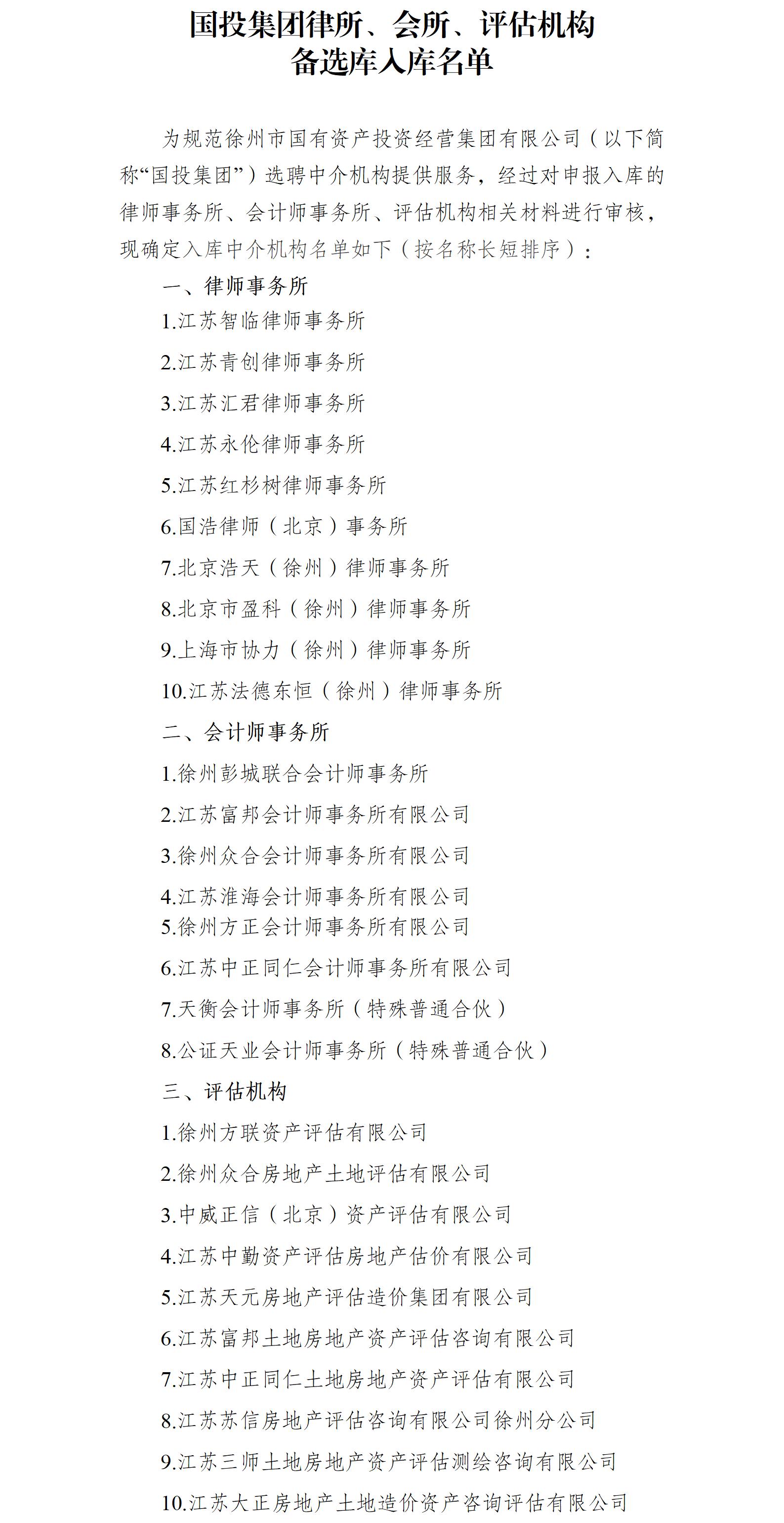 國投集團(tuán)律所、會(huì)所、評(píng)估機(jī)構(gòu)備選庫入庫名單
