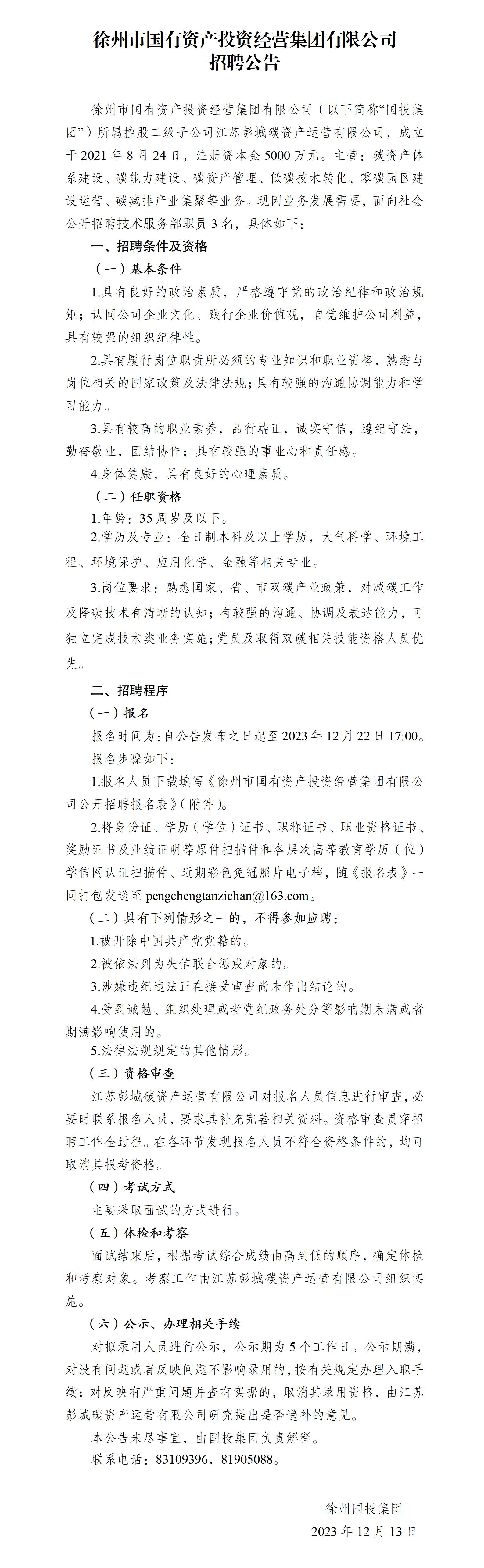 徐州市國有資產(chǎn)投資經(jīng)營集團(tuán)有限公司公開招聘公告