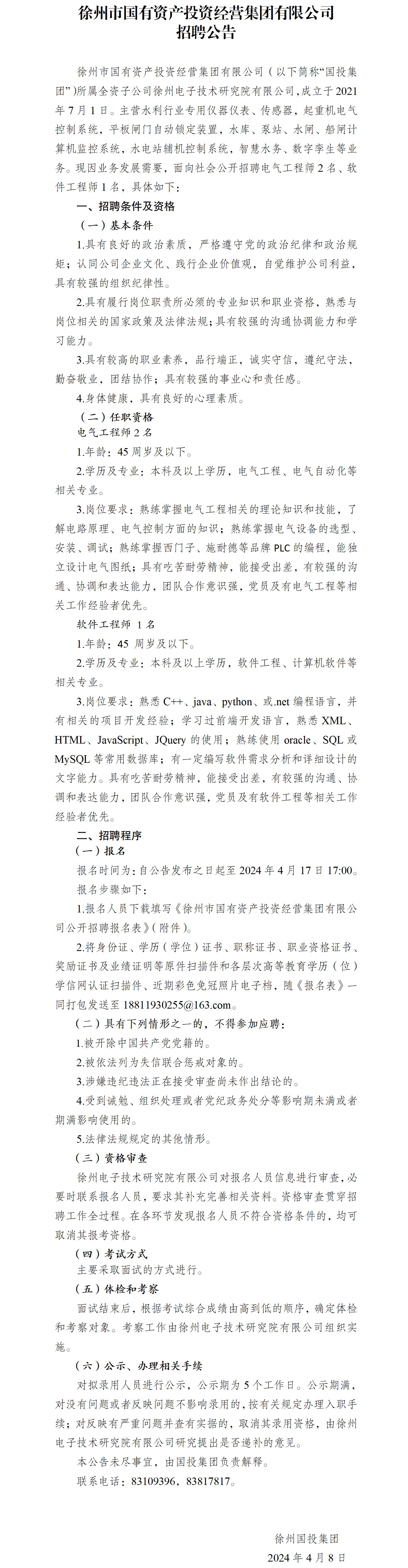 徐州市國有資產投資經營集團有限公司公開招聘公告