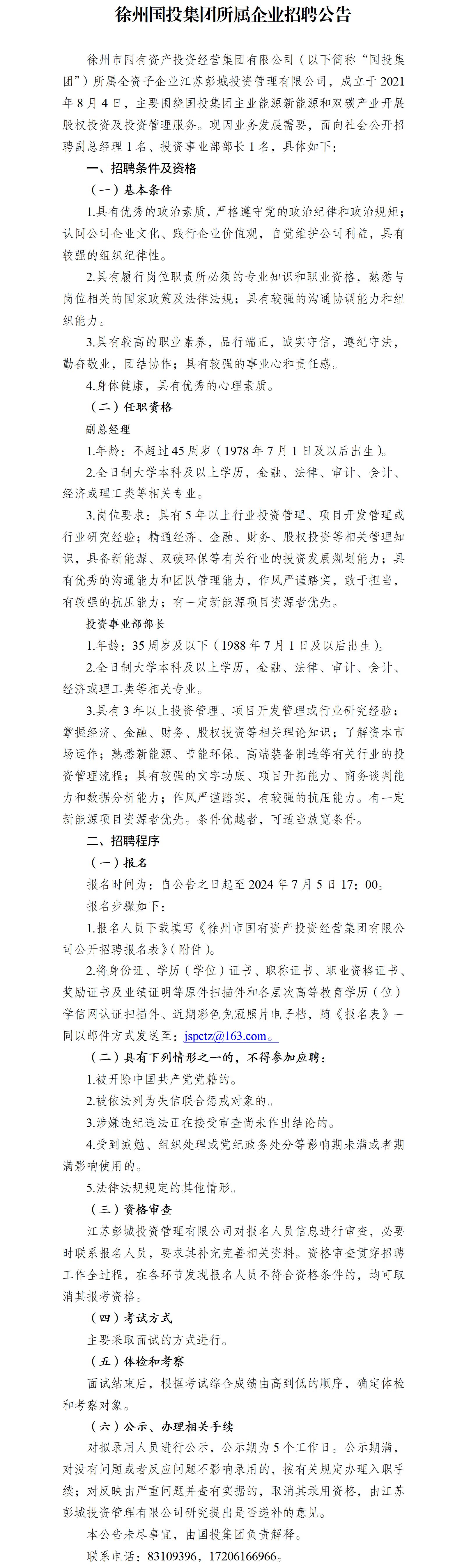 徐州市國(guó)有資產(chǎn)投資經(jīng)營(yíng)集團(tuán)有限公司公開招聘公告