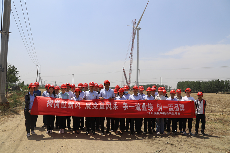 6月11日上午,國投環(huán)能黨總支組織所屬機(jī)關(guān)黨支部、國新黨支部、國湖黨支部、國投新奧黨支部黨員及入黨積極分子開展“深入一線、服務(wù)基層”主題黨日活動,赴新沂市阿湖鎮(zhèn)一期90MW風(fēng)電項(xiàng)目現(xiàn)場觀摩風(fēng)機(jī)吊裝,并前往小窯頭烈士陵園憑吊革命先烈。