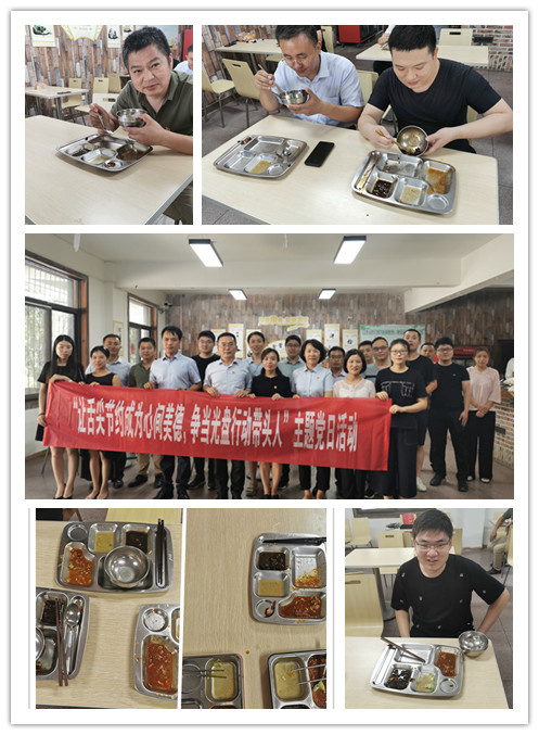 “一粥一飯見作風,一枝一葉總關(guān)情。”為全面貫徹落實習近平總書記對制止餐飲浪費行為的重要指示精神,深化黨員學習教育成效,全力營造“浪費可恥、節(jié)約為榮”的濃厚氛圍,大力提倡“厲行節(jié)約、反對浪費”的良好風氣,傳承弘揚“勤儉節(jié)約、艱苦奮斗”的優(yōu)良傳統(tǒng),國投環(huán)能黨總支在全公司范圍內(nèi)發(fā)起“厲行節(jié)約、踐行光盤”倡議書。倡議所屬各支部及全體黨員以知為行、廣泛參與,帶動身邊群眾共做“勤儉節(jié)約”的踐行者;倡議黨員從我做起,拒絕剩餐,爭當“光盤行動”的示范者;倡議黨員推己及人,互相提醒,成為“光盤行動”的傳播者。為積極響應(yīng)國投環(huán)能黨總支“厲行節(jié)約、踐行光盤”倡議,國投環(huán)能公司機關(guān)黨支部聯(lián)合國投新奧黨支部于2020年9月4日開展了“讓舌尖節(jié)約成為心間美德,爭當光盤行動帶頭人”主題黨日活動。