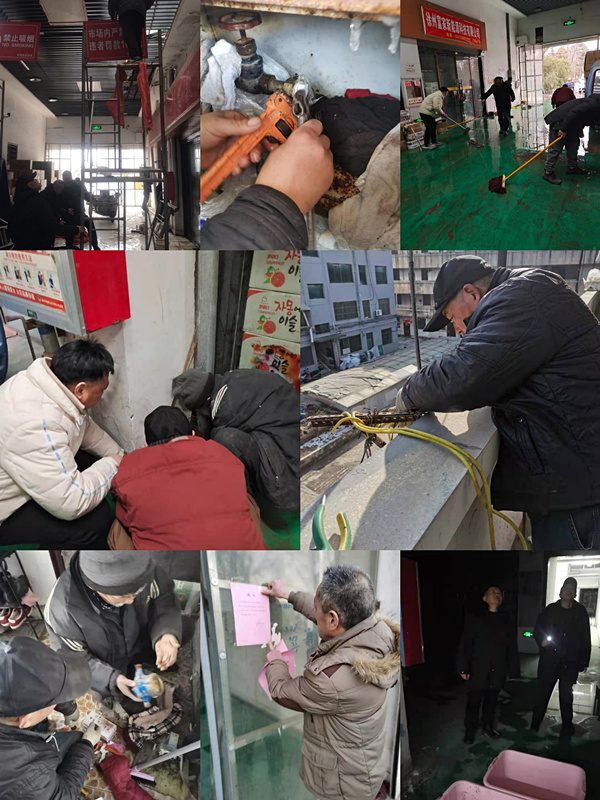 盡管市場已提前做好各項(xiàng)管線保溫措施,同時(shí)多次下發(fā)通知提醒業(yè)戶注意管線防寒保暖。但是在1月6日至11日極寒天氣下,還是出現(xiàn)了眾多管線凍結(jié)堵塞,水表爆裂等情況。市場服務(wù)熱線電話不斷,報(bào)修單呈數(shù)倍增長。商貿(mào)公司黨支部迅速啟動應(yīng)急預(yù)案,從支部書記到普通黨員全員加入搶修隊(duì)伍,確保爆裂管線第一時(shí)間得到搶修,業(yè)主報(bào)修二小時(shí)內(nèi)得到維修。黨員隊(duì)伍和資產(chǎn)管理部全體同志,頂著嚴(yán)寒加快搶修進(jìn)度。在滴水成冰的寒冬里,他們團(tuán)結(jié)協(xié)作、爭分奪秒,與嚴(yán)寒抗戰(zhàn)、與時(shí)間賽跑,高質(zhì)量地完成了搶修任務(wù),受到業(yè)主廣泛好評。