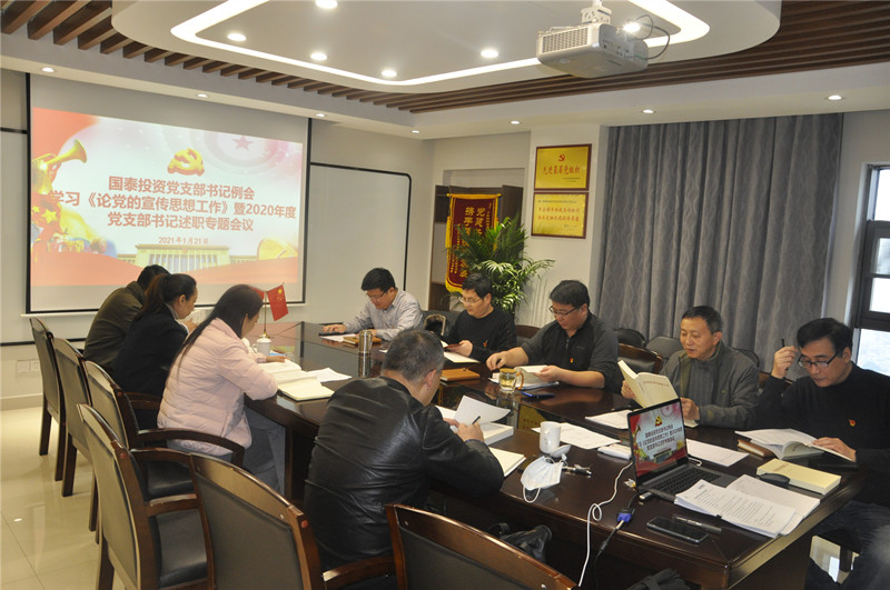 為學(xué)習(xí)貫徹習(xí)近平總書記關(guān)于宣傳思想工作的新思想、新觀點(diǎn)、新論斷,進(jìn)一步落實(shí)黨建工作責(zé)任制,推動(dòng)全面從嚴(yán)治黨向基層延伸。1月21日上午,根據(jù)集團(tuán)公司“雙述雙評”工作安排,國泰投資黨總支召開學(xué)習(xí)貫徹《論黨的宣傳思想工作》暨2020年度黨支部書記述職專題會(huì)議。會(huì)議由國泰投資黨總支書記霍凱主持,黨總支中心組成員、各直屬黨支部書記參加。