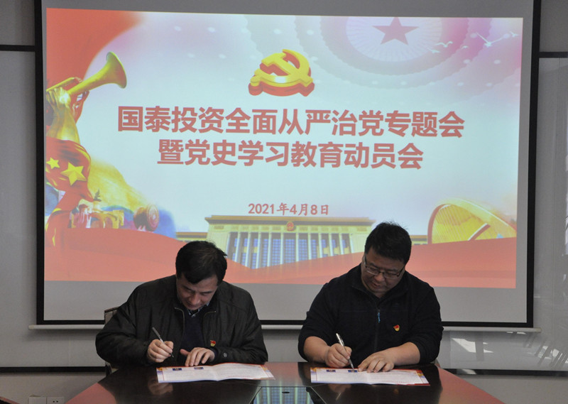 會議對持續(xù)、深入開展黨史學習教育進行了再動員、再部署,傳達學習了《關于開展百日學百年黨史學習教育活動的通知》等文件,強調(diào)要堅決貫徹落實好習近平總書記在黨史學習教育動員大會上的講話精神,以實施“六個一”工程為主線,牢牢把握重點任務,切實加強組織領導,精心組織安排,創(chuàng)新豐富方式,高標準高質量開展好黨史學習教育,做到學史明理、學史增信、學史崇德、學史力行,奮力開創(chuàng)國泰投資轉型發(fā)展新未來,以優(yōu)異成績迎接建黨100周年。