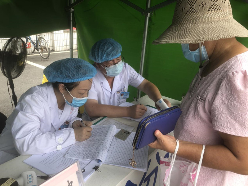 預(yù)檢分診,承擔(dān)著對(duì)進(jìn)入醫(yī)院的患者進(jìn)行測(cè)溫、掃碼、詢問(wèn)流行病史以及分診的重任。根據(jù)疫情防控需要,醫(yī)院多次將預(yù)檢分診關(guān)口進(jìn)行前移。工作人員們冒著被感染的風(fēng)險(xiǎn),一站就是幾個(gè)小時(shí),不停地說(shuō)話,不停地登記,嗓子都啞了。由于人員缺乏,多次進(jìn)行抽調(diào),各臨床科室在人少工作緊張的情況下,仍然克服各自困難,參與預(yù)檢分診;黨員干部下沉,機(jī)關(guān)、后勤干部在百忙之中進(jìn)行輪值,保證了預(yù)檢分診工作的需要。他們對(duì)來(lái)院就診的患者嚴(yán)格落實(shí)“三查一問(wèn)”,正確分診,做到萬(wàn)無(wú)一失。