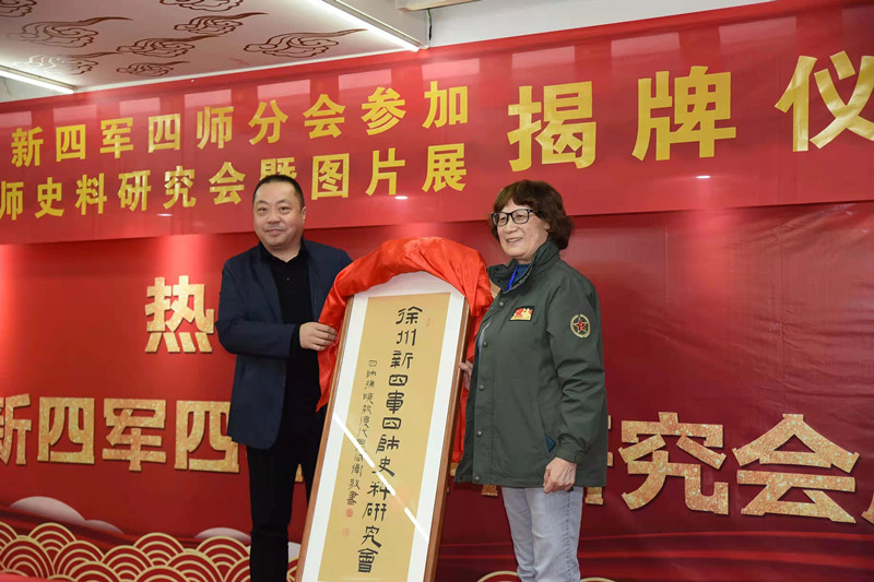活動中,郭壘與鄧小燕共同為“徐州新四軍四師史料研究會”進行了揭牌。揭牌儀式后大家至蘇悅黨史館進行了參觀,參觀過程中,鄧小燕對集團公司為“徐州新四軍四師史料研究會”的成立所做出的辛苦工作表示感謝,同時為下一步如何將新四軍精神發(fā)揚傳播提出了指導意見。