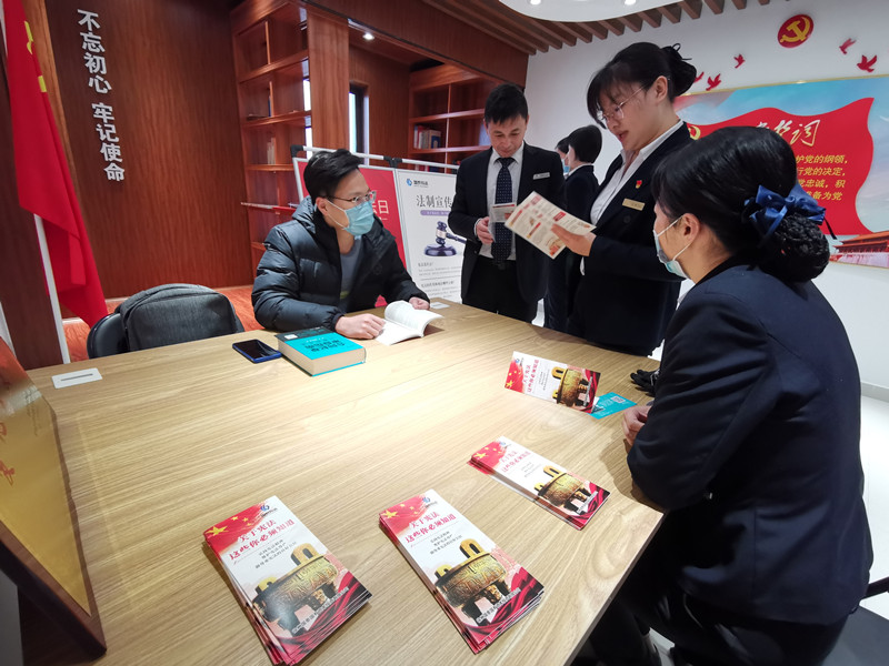 在公司內(nèi)部,采購了《民法典》《傳染病防疫法》《中國合同大全》等專業(yè)法律書籍百余本,在派發(fā)書籍的同時進(jìn)行現(xiàn)場講解,激發(fā)員工學(xué)習(xí)法律知識的熱情;通過組建普法小分隊、開展“普法進(jìn)食堂”活動、輪番播放《今日說法》《法制講堂》等法制節(jié)目、在餐桌上擺放普法臺卡等形式,將食堂“升級改造”為“普法講堂”,以案例和可視化的形式將法律知識生動展示,為員工提供法治學(xué)習(xí)新體驗,更加直觀地普及法律法規(guī)知識;還設(shè)立法律咨詢處,通過發(fā)放三折頁的形式,現(xiàn)場答疑解惑,接受咨詢,大力開展法律知識宣傳,進(jìn)一步提高廣大干部職工的法治意識。