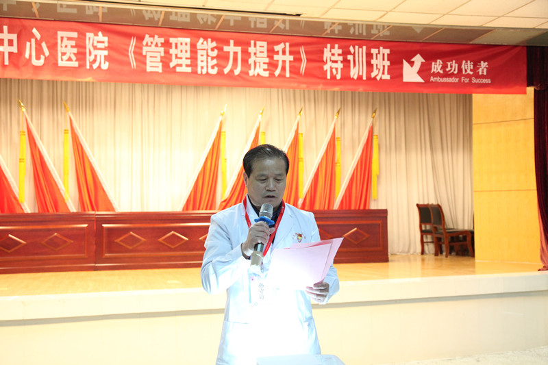 院黨委書記孫守訪在開班儀式致辭中指出,舉辦這次管理能力提升特訓(xùn)班,旨在我們學(xué)習(xí)先進(jìn)的管理經(jīng)驗(yàn),解放思想、轉(zhuǎn)變觀念,提高大家的綜合素養(yǎng),打造一支政治過硬、立場堅(jiān)定、無私奉獻(xiàn)的干部隊(duì)伍,保障醫(yī)院改革發(fā)展。要求參培人員無論是從醫(yī)院的發(fā)展、從科室的管理方面,還是從個人的提升方面,都要珍惜此次培訓(xùn)機(jī)會,切實(shí)達(dá)到增強(qiáng)本領(lǐng)、提高素養(yǎng)、保障發(fā)展的目的。