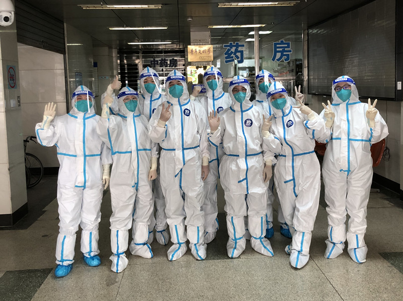 在護(hù)士長(zhǎng)楊倩的帶領(lǐng)下,急診室全員參戰(zhàn),再苦再累,也沒有一人掉隊(duì)。趙蕊平時(shí)心臟室性早搏,一直在服用治療心肌的藥物,但她與護(hù)士長(zhǎng)楊倩一樣,剛結(jié)束蘇州疫情支援任務(wù),還沒來及與家人團(tuán)聚,便毅然投入一線戰(zhàn)斗,除了日常工作,還肩負(fù)著污染區(qū)日常工作記錄、圖片影像資料報(bào)送等各項(xiàng)工作;葛麗娜因?yàn)榉酪吖ぷ鞯脑颍辉偻七t婚期,但她仍然微笑著隨隊(duì)伍第一批進(jìn)入污染區(qū);已是知命之年的李莉老師,依然要求同大家一樣,堅(jiān)守崗位,不下火線;孟曉曉身體雖然孱弱,需要長(zhǎng)期中藥調(diào)理,但她仍倔強(qiáng)地收拾行囊,不愿掉隊(duì);護(hù)士趙丹被調(diào)去兄弟醫(yī)院支援,在得知我院被劃為“黃碼”定點(diǎn)醫(yī)院之后,立即與護(hù)士長(zhǎng)聯(lián)系,隨時(shí)準(zhǔn)備“回家”應(yīng)戰(zhàn);當(dāng)然,忙碌的身影還有孫郡、朱翠芳,她們時(shí)刻為第二批進(jìn)入污染區(qū)而準(zhǔn)備著。