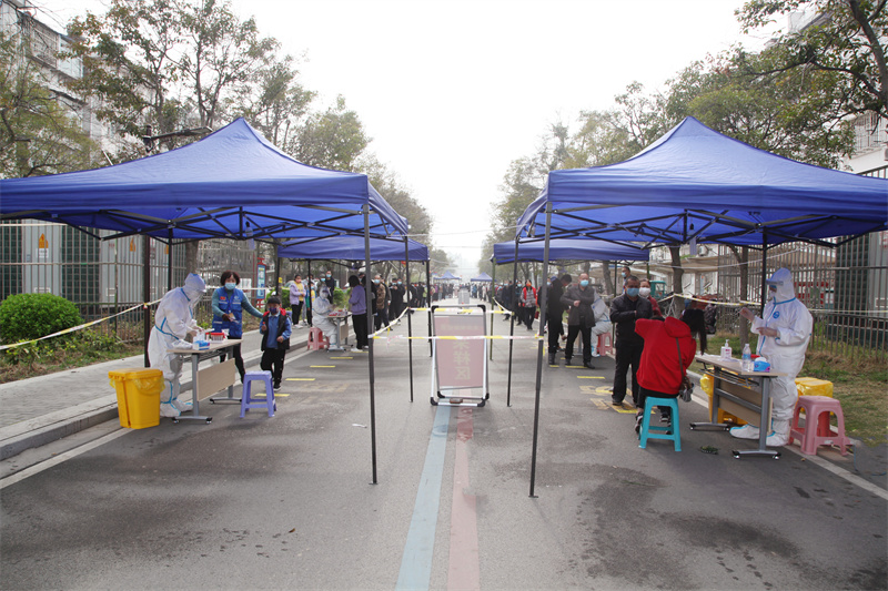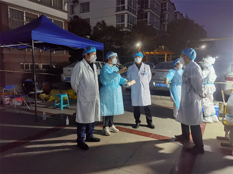 采樣人員匆匆吃了點午飯后,11點半便來到了各自的采樣點,做好了奮戰(zhàn)到深夜的準備。中午,院黨委書記、院長張心海及班子成員先后來到各個采樣點進行督導(dǎo),現(xiàn)場解決問題。晚上7點多,院領(lǐng)導(dǎo)又一次來到各個采樣點進行慰問。