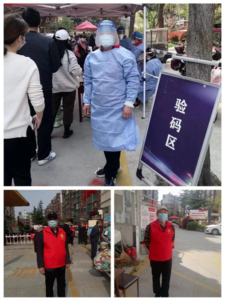 疫情當前,責任在肩。作為酒店的一名老員工,六十多歲的李星宇在得知徐州疫情嚴重,主動投入到社區(qū)防疫工作當中,“我的兒子兒媳作為醫(yī)生舍小家為大家,奮戰(zhàn)在疫情第一線,深深地感動了我。受孩子們的影響,我也加入了社區(qū)的志愿者隊伍。作為一名老員工,我要盡微薄之力,把關懷和愛心帶給社區(qū)居民,為社區(qū)服務責無旁貸?!崩钚怯蠲刻旆e極配合社區(qū)工作人員,一直忙忙碌碌,有時連水都顧不上喝一口,在社區(qū)門口搭棚,抬桌子,拉界線,做消毒,粘貼一米界線等工作,為居民做核酸做好準備。社區(qū)通知7號早上5點要上崗到位,把小區(qū)外面的棚子拆除搬到小區(qū)里面,再重新搭好,在六點半之前要準備好檢測核酸的一切工作,盡管工作繁重,他沒喊過一聲苦,沒叫過一聲累。