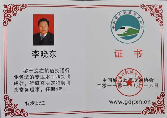 2011年12月26日,集團公司正式獲批成為中國城市軌道交通協(xié)會常務(wù)理事單位,2012年1月4日集團公司作為中國城市軌道交通協(xié)會常務(wù)理事單位正式掛牌開展工作。集團公司黨委書記、董事長李修明,黨委副書記、副董事長、總經(jīng)理李曉東被中國城市軌道交通協(xié)會特聘為常務(wù)理事。