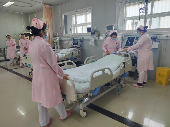 重癥醫(yī)學(xué)科模擬呼吸機發(fā)生氧氣供應(yīng)不足出現(xiàn)報警,無法正常工作的場景。當(dāng)班護士即刻檢查儀器,此時患者血氧飽和度正在下降,立即呼叫醫(yī)生和另一名護士進行緊急處理,遵醫(yī)囑立即脫機,連接備用氧氣瓶及簡易呼吸器進行輔助通氣,之后患者血氧飽和度上升,生命體征逐漸平穩(wěn)。隨后上報護士長,聯(lián)系后勤保障部進行檢查維修,并上報不良事件。骨科應(yīng)急預(yù)案演練主要模擬責(zé)任護士在巡回病房時,發(fā)現(xiàn)正在輸血的患者突然出現(xiàn)寒戰(zhàn)癥狀的場景。責(zé)任護士立即停止輸血并更換了輸血袋及輸血器,通知值班醫(yī)生和護士長,緊急啟動輸血反應(yīng)應(yīng)急預(yù)案,并上報不良事件。演練結(jié)束后護理部、護士長及護理骨干對應(yīng)急預(yù)案程序、制度落實、操作規(guī)范、人文關(guān)懷等方面進行綜合評價。