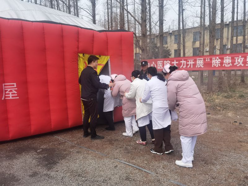 為了貼近實戰(zhàn),讓大家真實體驗火災(zāi)來臨時的緊迫感,現(xiàn)場設(shè)置了充氣式疏散逃生體驗屋,通過設(shè)置煙霧等方式模擬火災(zāi)現(xiàn)場。醫(yī)院邀請了“三月行”安全公司郭教員對參加演練職工進(jìn)行了簡短的培訓(xùn),強調(diào)了進(jìn)入消防體驗屋后的注意事項,參加演練人員分組進(jìn)行演練。在郭教員的指引下,參加演練的人員彎腰捂鼻,依次進(jìn)入消防逃生屋,在彌漫著濃重的煙霧中摸索著彎膝前進(jìn),順利找到了出口逃生,演練在井然有序的氛圍下完成。