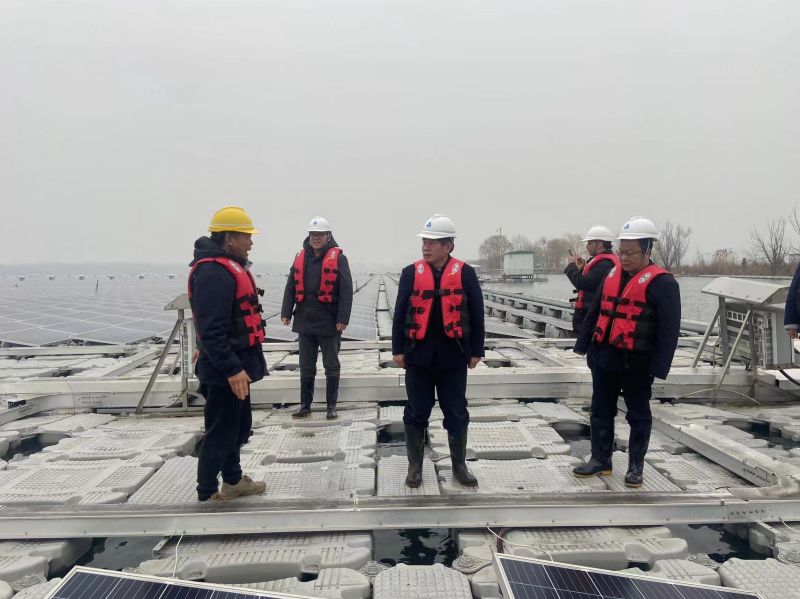 尹振清一行先后查看了光伏電站中控室、一次室、二次室、匯流箱、逆變器、水上光伏組件及消防器材等重要設(shè)備設(shè)施,詳細(xì)了解了各重要點位的安全生產(chǎn)風(fēng)險及安全防范措施落實情況。