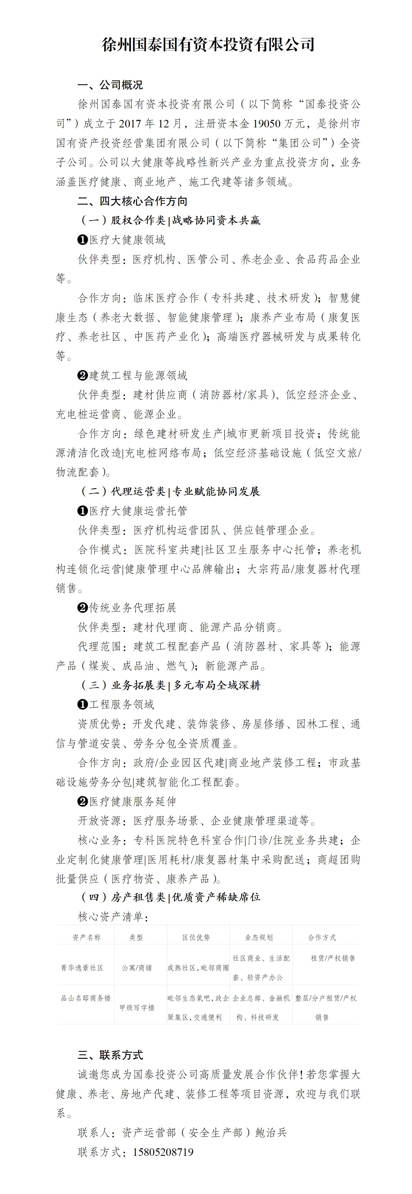 【業(yè)務(wù)推介】徐州國泰國有資本投資有限公司