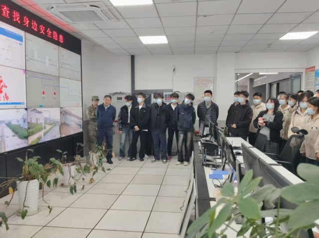 在國新公司相關(guān)負責人陪同下,師生們系統(tǒng)參觀了中控室、沼氣脫硫系統(tǒng)、厭氧發(fā)酵裝置、預處理車間、餐廚處理車間及沼液膜濃縮車間等關(guān)鍵工藝環(huán)節(jié)。針對學生的學科背景,講解人員聚焦智能化管控系統(tǒng)、環(huán)保處理工藝及機電設(shè)備的運行原理等內(nèi)容進行了深入講解,使同學們在真實的產(chǎn)業(yè)場景中,直觀感受到理論知識與工程實踐的深度融合,進一步激發(fā)了專業(yè)研習熱情與職業(yè)方向認同。