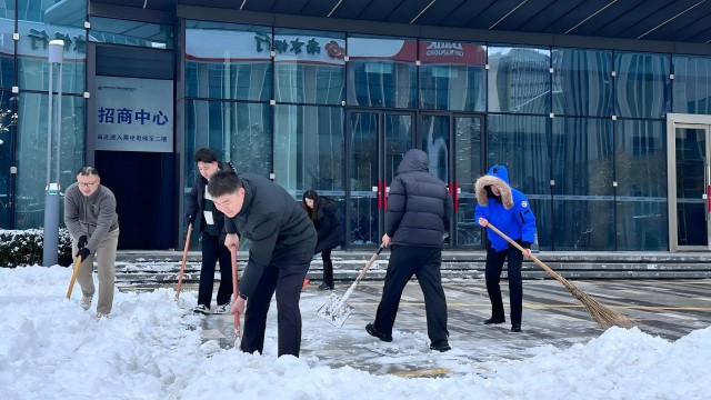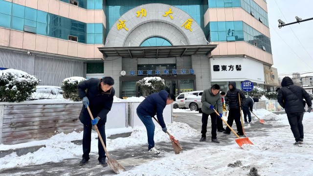 沖鋒在前,擔(dān)當(dāng)在風(fēng)雪一線熠熠生輝。能源板塊各電站職工頂風(fēng)冒雪,爭分奪秒清掃光伏區(qū)、風(fēng)機場設(shè)備積雪,運用科技手段嚴(yán)密巡檢,以專業(yè)守護(hù)著能源“生命線”。遠(yuǎn)大、新亞等生產(chǎn)型企業(yè)自發(fā)清掃主干道與車間通道,為物流暢通與安全生產(chǎn)保駕護(hù)航。勞代中心黨員清晨便開辟出辦事大廳的“安全通道”,擦亮服務(wù)民生窗口。港華燃?xì)馇嗄晖粨絷犙杆賳討?yīng)急預(yù)案,分組奔赴全市各調(diào)壓站點,冒雪檢查設(shè)備、清理積雪,以精準(zhǔn)操作守護(hù)著千家萬戶的灶臺溫暖,切實履行“保民生、穩(wěn)供氣”的社會責(zé)任。成功大廈、科創(chuàng)園、國泰品山大廈、藍(lán)天商業(yè)公司等商場樓宇中,黨員先鋒隊快速清理出入口積雪,全力保障業(yè)戶出行便利與安全。醫(yī)院干部職工在門診大廳出入口、住院部通道等區(qū)域分工協(xié)作,用忙碌的身影開辟出安全暢通的就醫(yī)通道,在皚皚白雪中彰顯溫暖明亮的醫(yī)者仁心。集團(tuán)本部大樓前,青年突擊隊聞令而動,輪流接力掃冰除雪,確保了公共區(qū)域通行無阻。從生產(chǎn)保供到服務(wù)前沿,國投人用“擔(dān)當(dāng)務(wù)實、團(tuán)結(jié)協(xié)作”的實際行動在皚皚白雪中踏出了一條條用青春守護(hù)的熱忱征途。