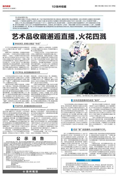 華強(qiáng)資產(chǎn)公司所屬的蘇悅文化公司直播基地自推廣以來,在徐州文化圈內(nèi)引起了強(qiáng)烈共鳴,都市晨報文化專欄記者知悉后,主動聯(lián)系蘇悅公司進(jìn)行了采訪,并與2020年4月14日(周二),對此進(jìn)行了整版報道。